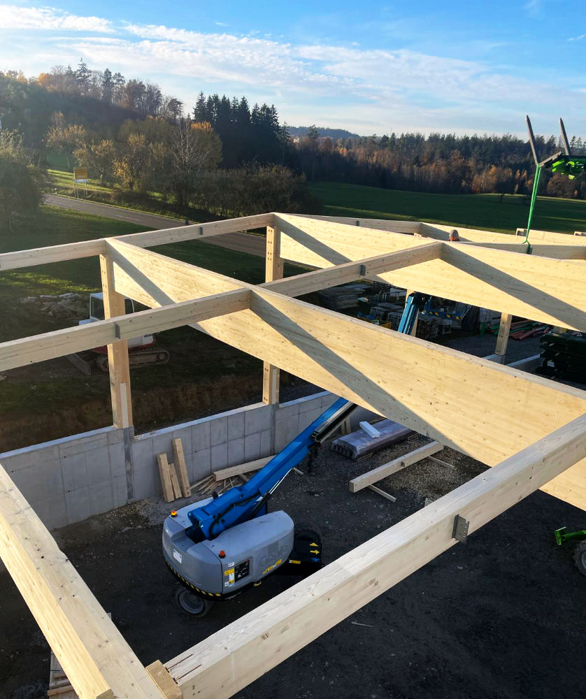 Mit dem Neubau können wir unseren vielschichtigen Betrieb – Zimmerei, Tiefbau und Friedhofsarbeiten – deutlich besser organisieren und unsere Abläufe optimieren. Außerdem bündeln wir alle bisherigen Standorte an einem zentralen Ort. Die neuen Räumlichkeiten sollen nicht nur unsere Effizienz steigern, sondern auch langfristig ein attraktiver Arbeitsplatz für unser Team sein. Durch größere Lagerkapazitäten können wir künftig flexibler auf Marktsituationen wie Materialpreissteigerungen reagieren und entsprechende Puffer schaffen.